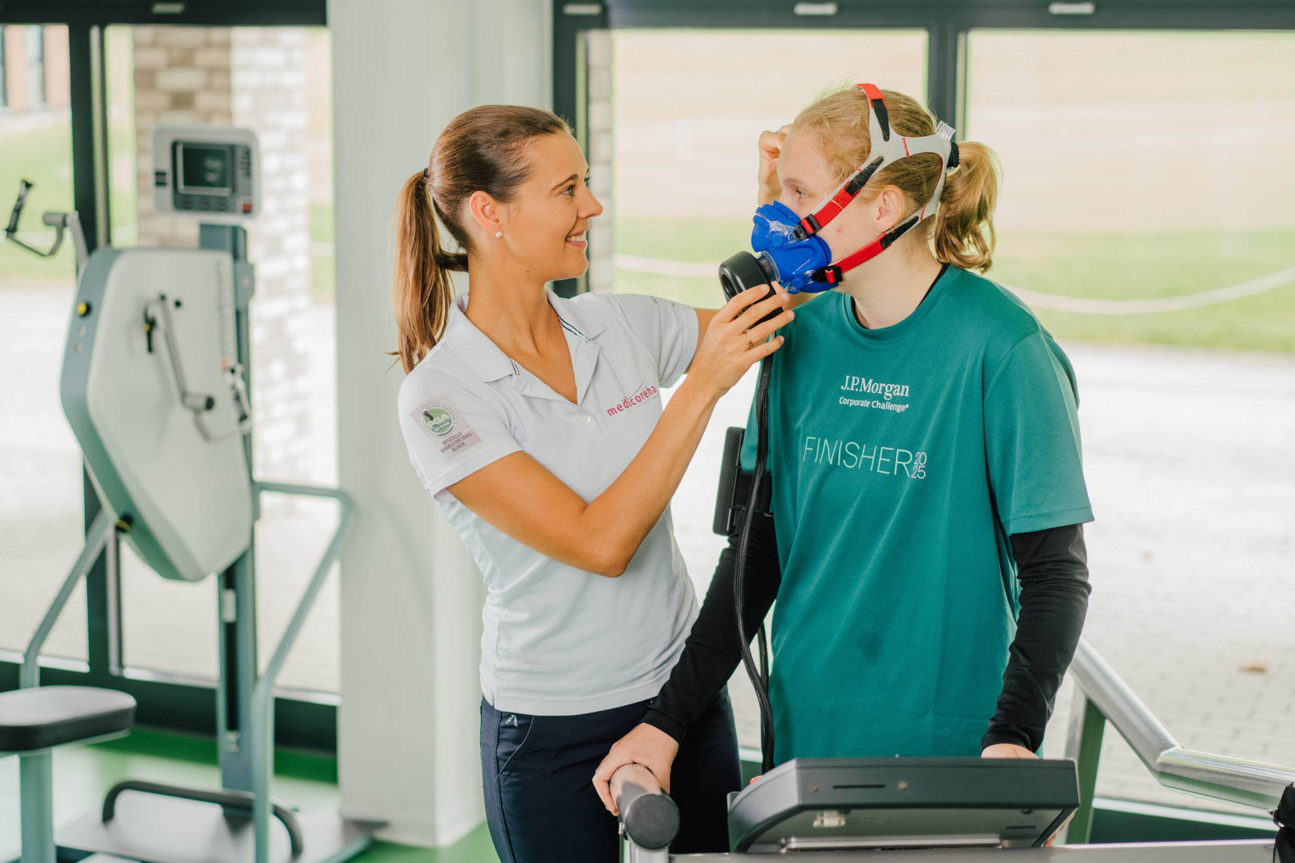 Durch die Spiroergometrie wird der aktuelle Trainingszustand von Lunge und Herz-Kreislaufsystem ermittelt. Dafür wird während eines Ausdauertrainings eine Maske über Mund und Nase gezogen, welche die Zusammensetzung der Atemgase misst. Gleichzeitig wird mittles Pulskontrolle die Herzleistung gemessen. Das Ergebnis ermöglicht eine individuelle Trainingsplanung und macht bei einer wiederholten Messung Trainingserfolge sichtbar. Das Gerät ist transportabel und kann somit vor Ort bei speziellen Trainingssituationen eingesetzt werden.