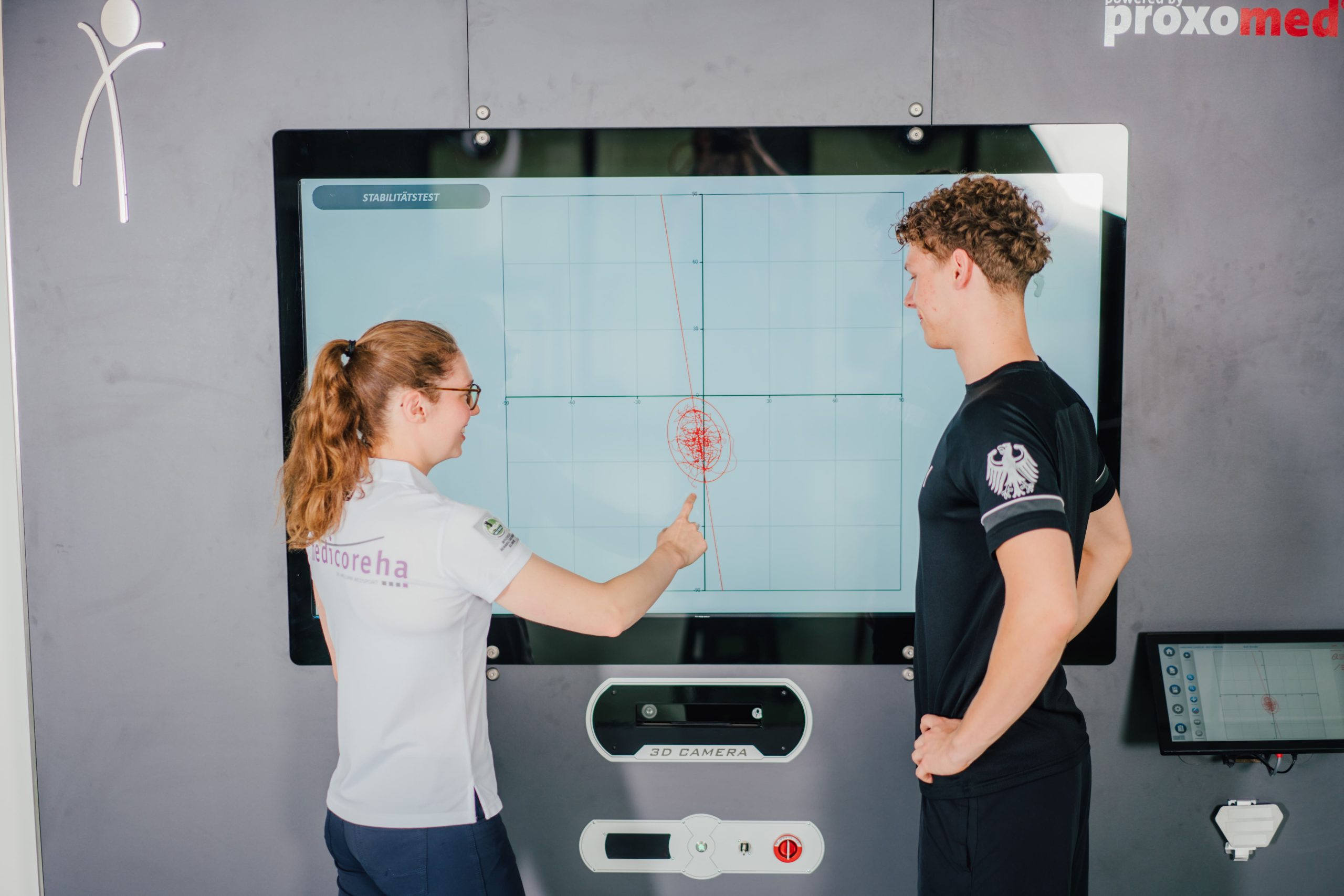 Über die 3D-Kamera werden bis zu 16 Körpergelenke in Echtzeit gescannt. Das System ermöglicht damit eine Live-Visualisierung der Gleichgewichts- und der Rumpfkontrolle, sowie der Gelenkwinkel. Zusätzlich werden über die Kraftmessplatte Kräfte erfasst, die Tests oder Übungen, sowie Sprungtests erlauben. Die Werte können zur effektiven Trainingsplanung genutzt werden und ermöglichen so z.B. eine gezielte Sturzprävention.
